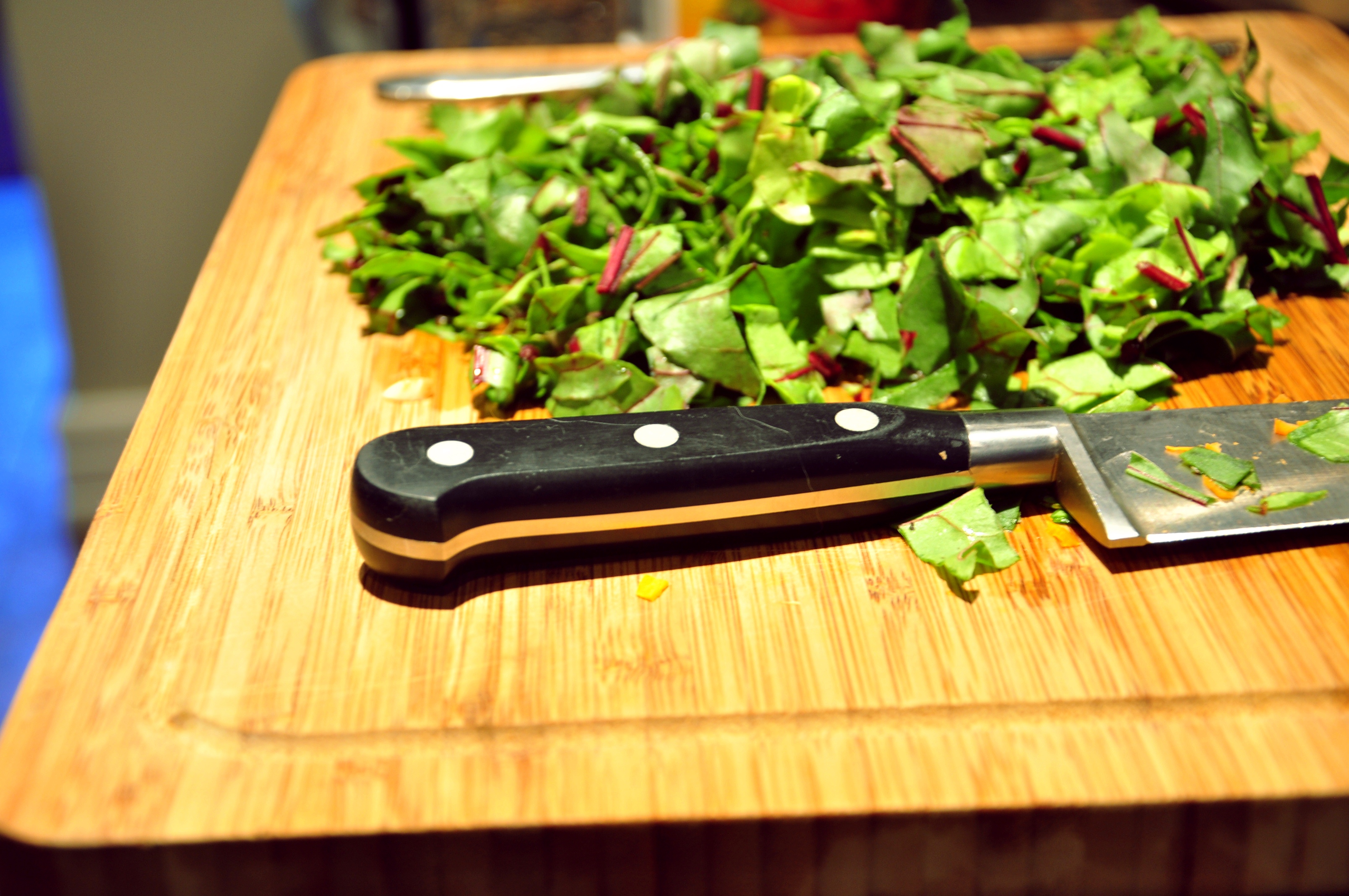 The majority of the time when I cook I like the have a picture of what the final product is supposed to look like to see if I have severely messed it up or not. In this case, I found a recipe that had no photo but it looked basic and tasty so I got to it. I altered my recipe a bit, but for the most part I’m following Cooking Light‘s Beet Soup with Potatoes and Beet Greens.