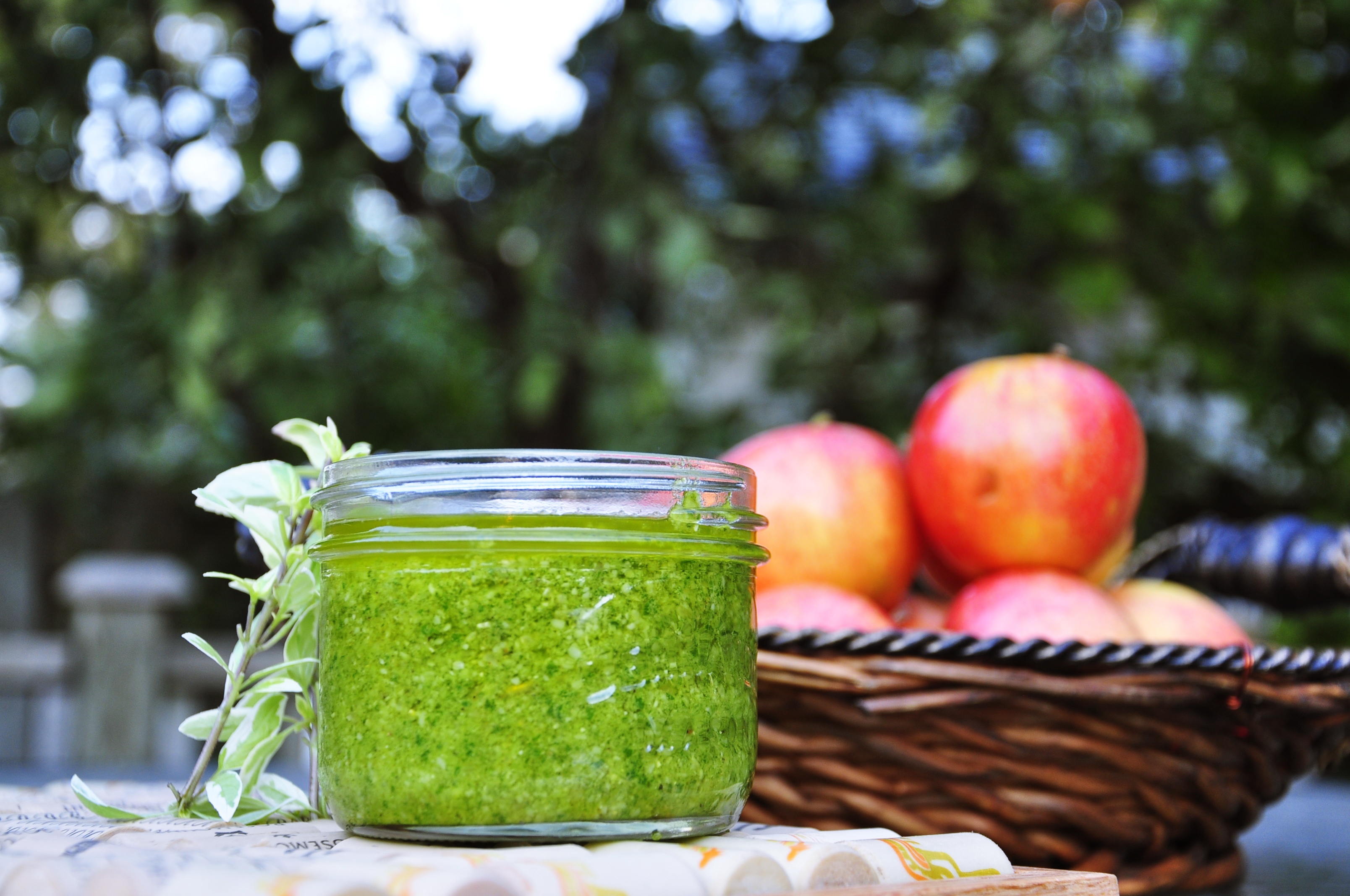 Anyways, I’m trying my best to get every last bit of fresh stuff from my garden. The one thing that seems impervious to the cold weather creeping in is basil. I had handfuls of this stuff growing all across a good part of my garden so pesto seemed the best route. Freezable, healthy and an all-around crowd pleaser. Really, who doesn’t like pesto. It’s blasphemous not to.