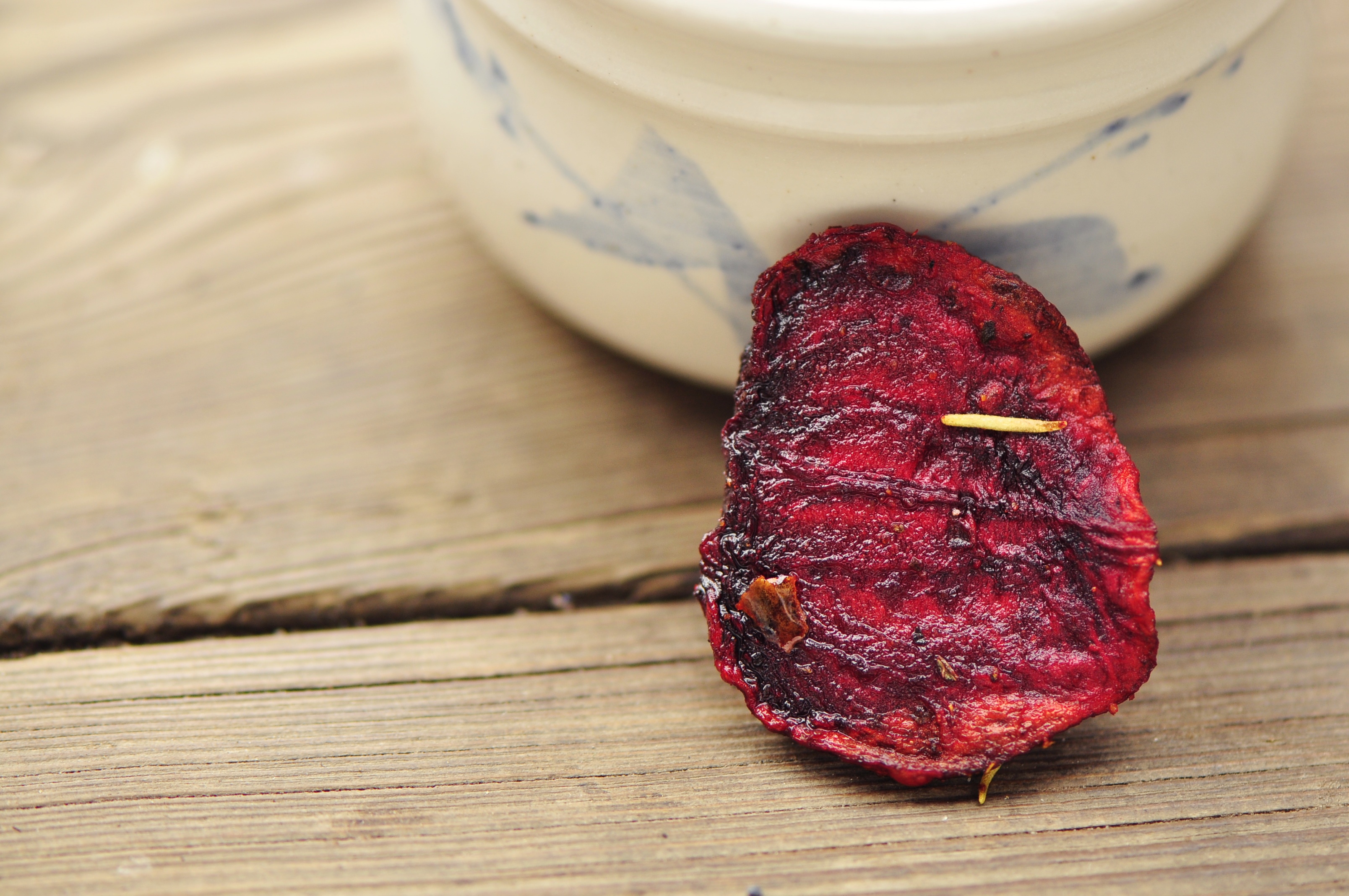 Sidenote: Because these are baked, they kind of lose some of their redness and are still slightly soft. If you want a sharper, crunchy “chip”, you could try deep-frying. I think I will next time just to see.