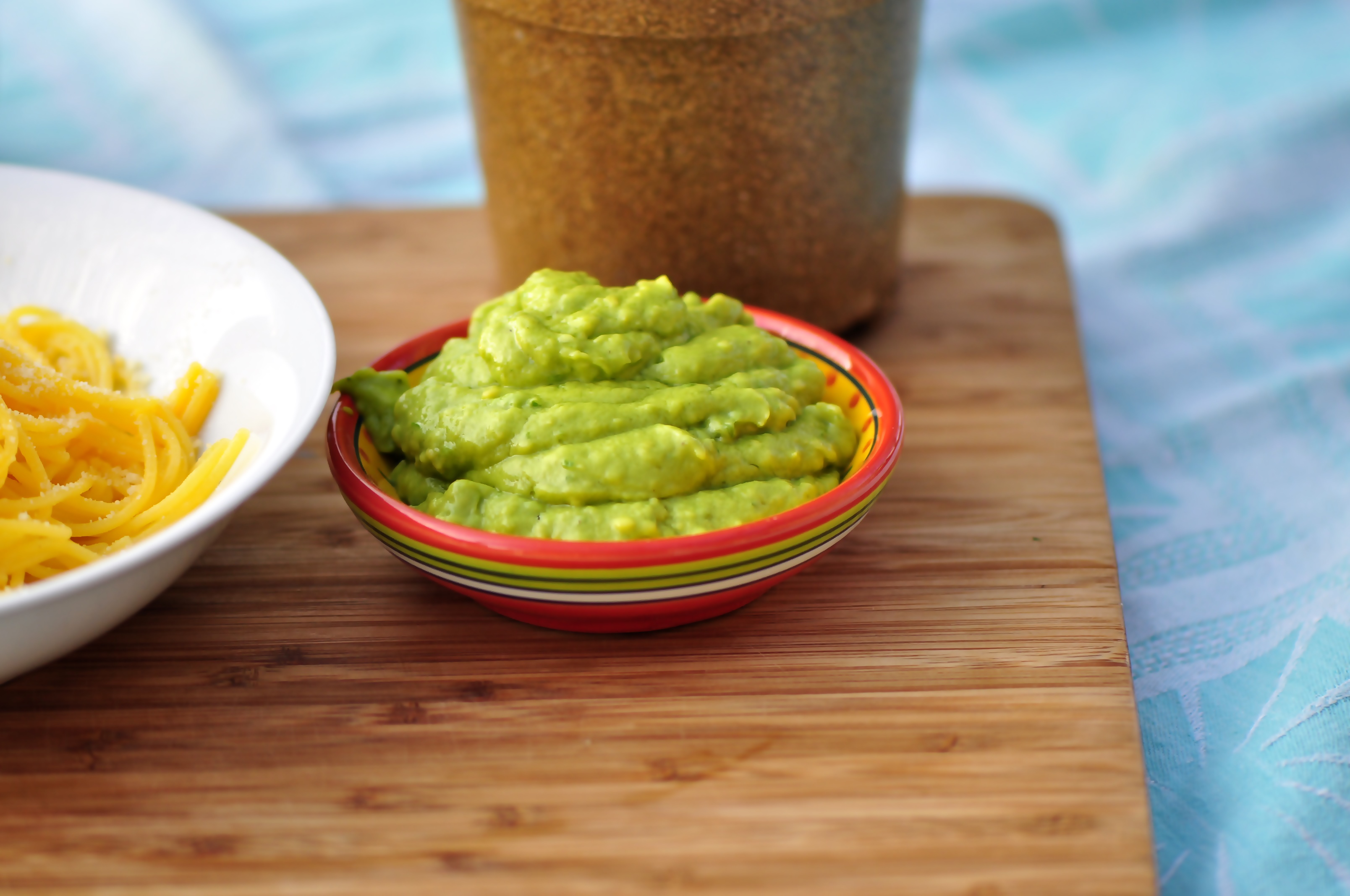 I used a gluten-free corn spaghetti this time around, and if you’re Celiac or gluten intolerant, I suggest this instead of rice pasta. Rice pasta gets sticky and can get this sort of “gummy” texture which ruins the whole dish, whereas once I put the pesto on the corn pasta, I couldn’t even tell the difference.Creamy Avocado Pesto on Corn Spaghetti