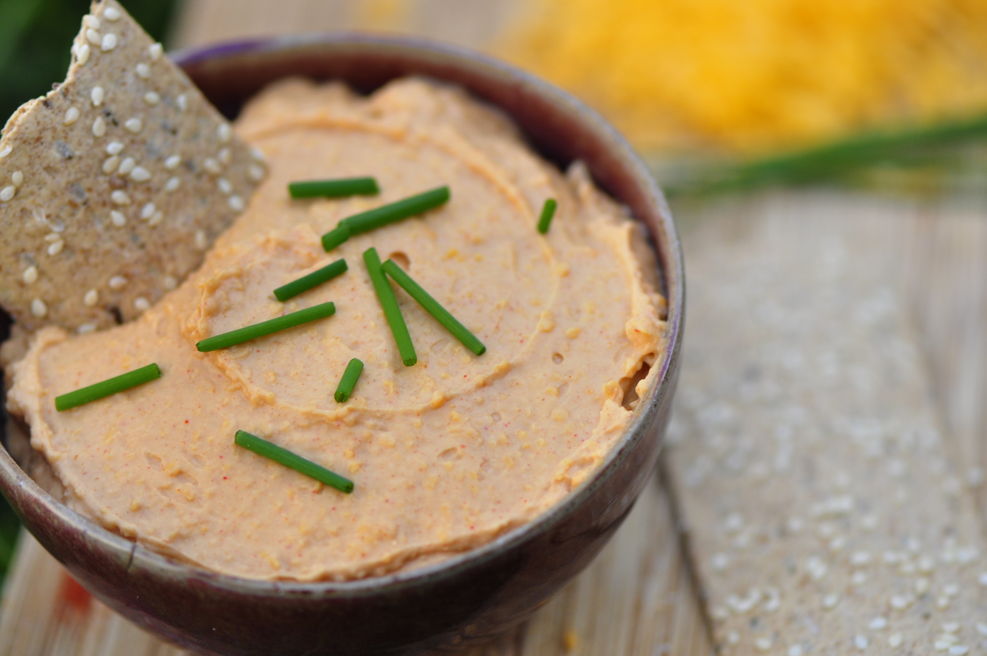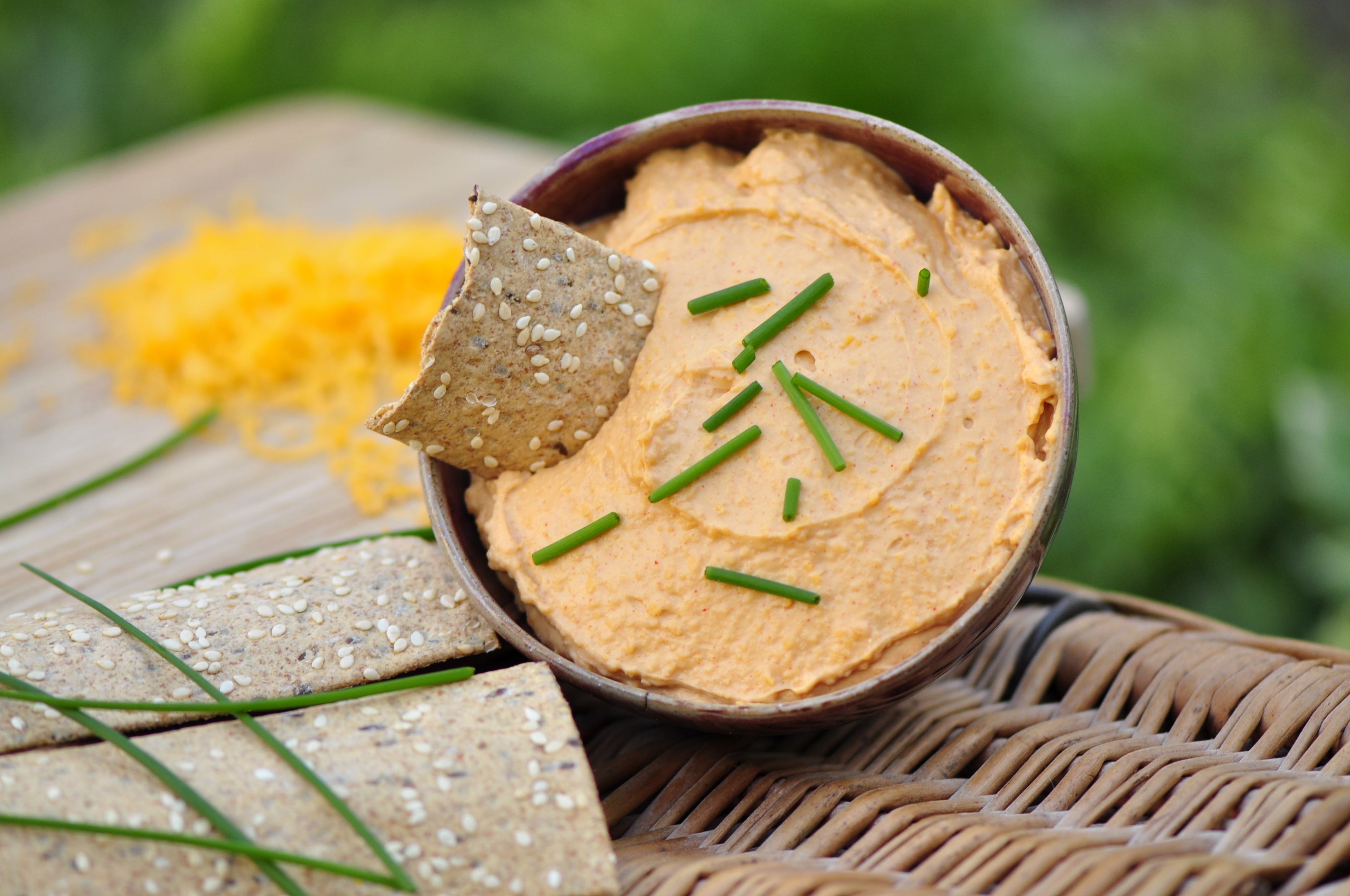 Gradually add beer, blending until the mixture is smooth and spreadable. It should not be runny—this would make it more of a dip, and beer may over-power the rest of the flavours. Top with chives and serve with pita chips, in sandwiches, with cut up veggies or crackers. Store in an airtight container in the fridge for up to one week.