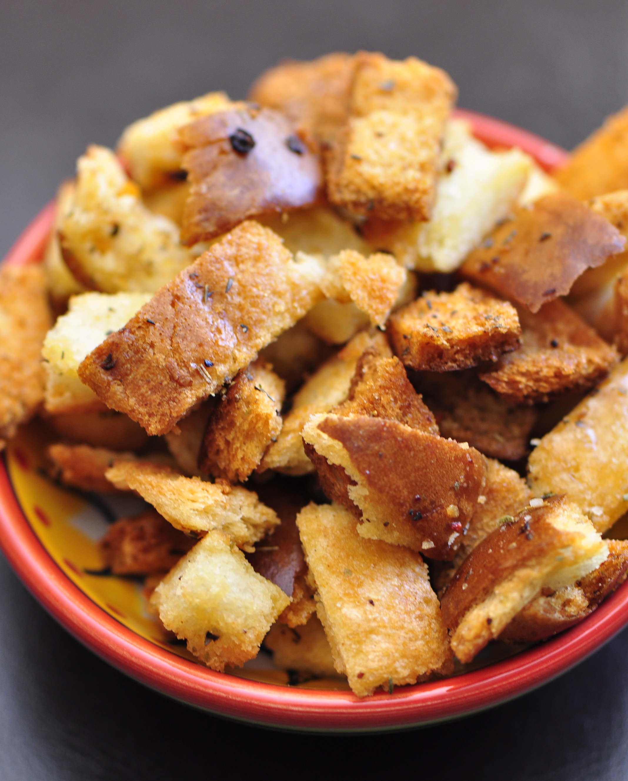 I made these croutons with the intention of using them as a topping for soups and salads but ended up eating them as a snack instead…and they went fast. The great thing about this recipe is that you can literally make any kind of croutons you want. You can use whatever bread you want and customize the seasonings to your personal taste—I think next time I might try a smoky chipotle crouton.