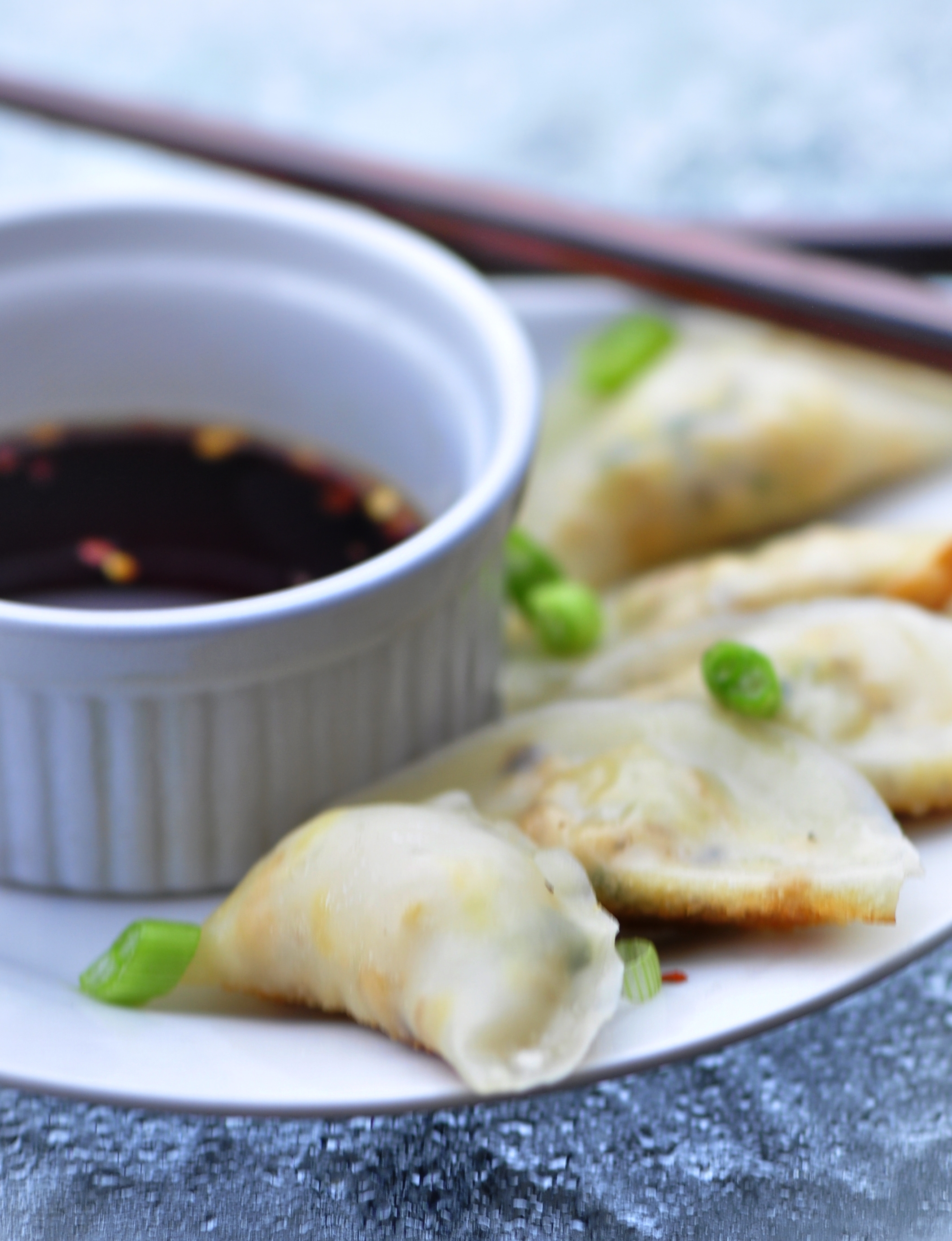 I followed the recipe from The Kitchn pretty closely, would love to try it the same way with different fillings! As she says in the post, these dumplings are “freezer friendly” so you can make them ahead for whenever you’re serving them, or if you just want a quick snack.