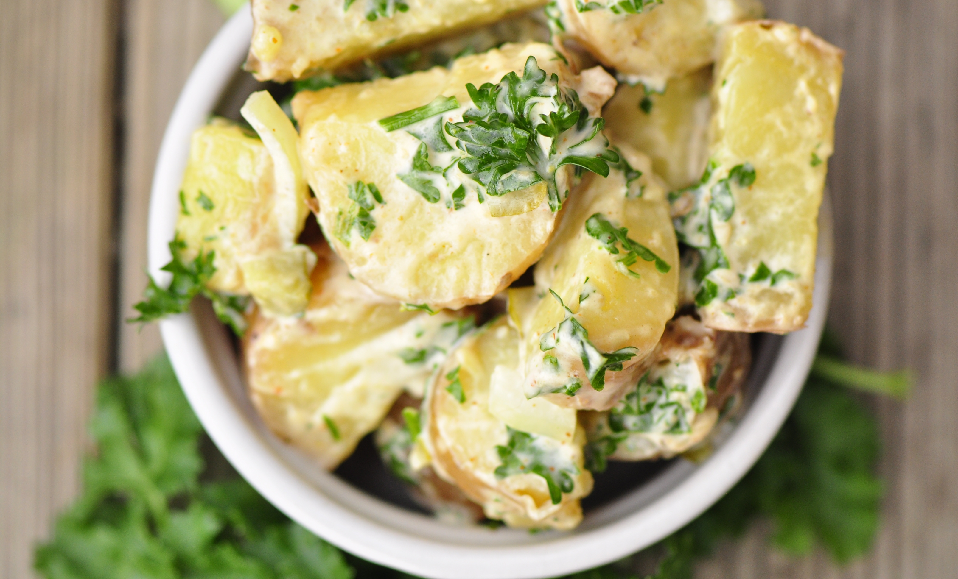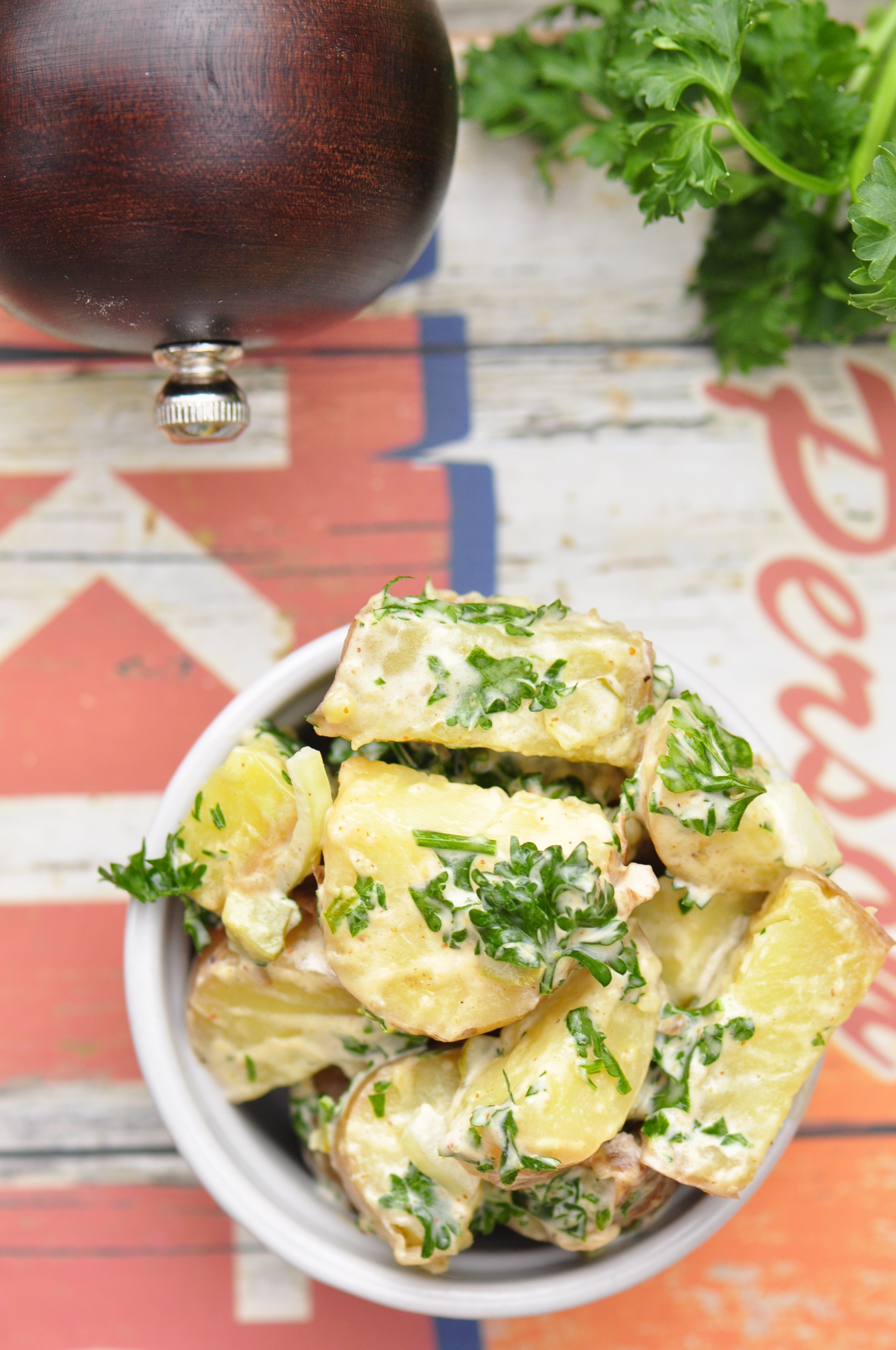 Potato salad is really versatile in a few ways. First of all, you can put in almost any type of spices, herbs and veggies and it will still carry a nice flavour. Secondly, potato salad can be eaten on its own or used as a burger topping (which is one of my preferred ways of eating it). Skip the typical barbecue toppings of relish (I’m sorry, relish is gross) and go straight for this creamy, flavourful topping that won’t disappoint.