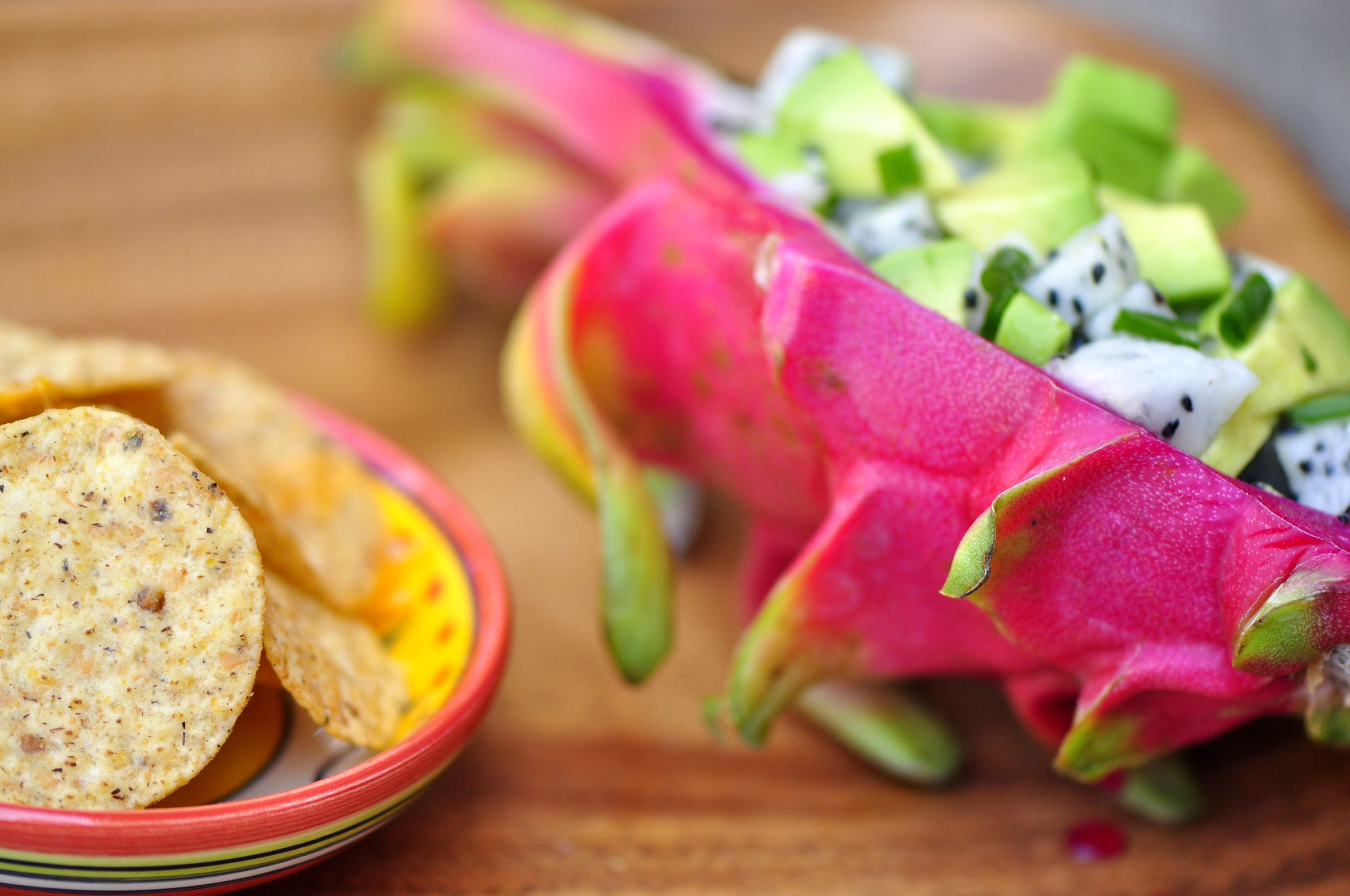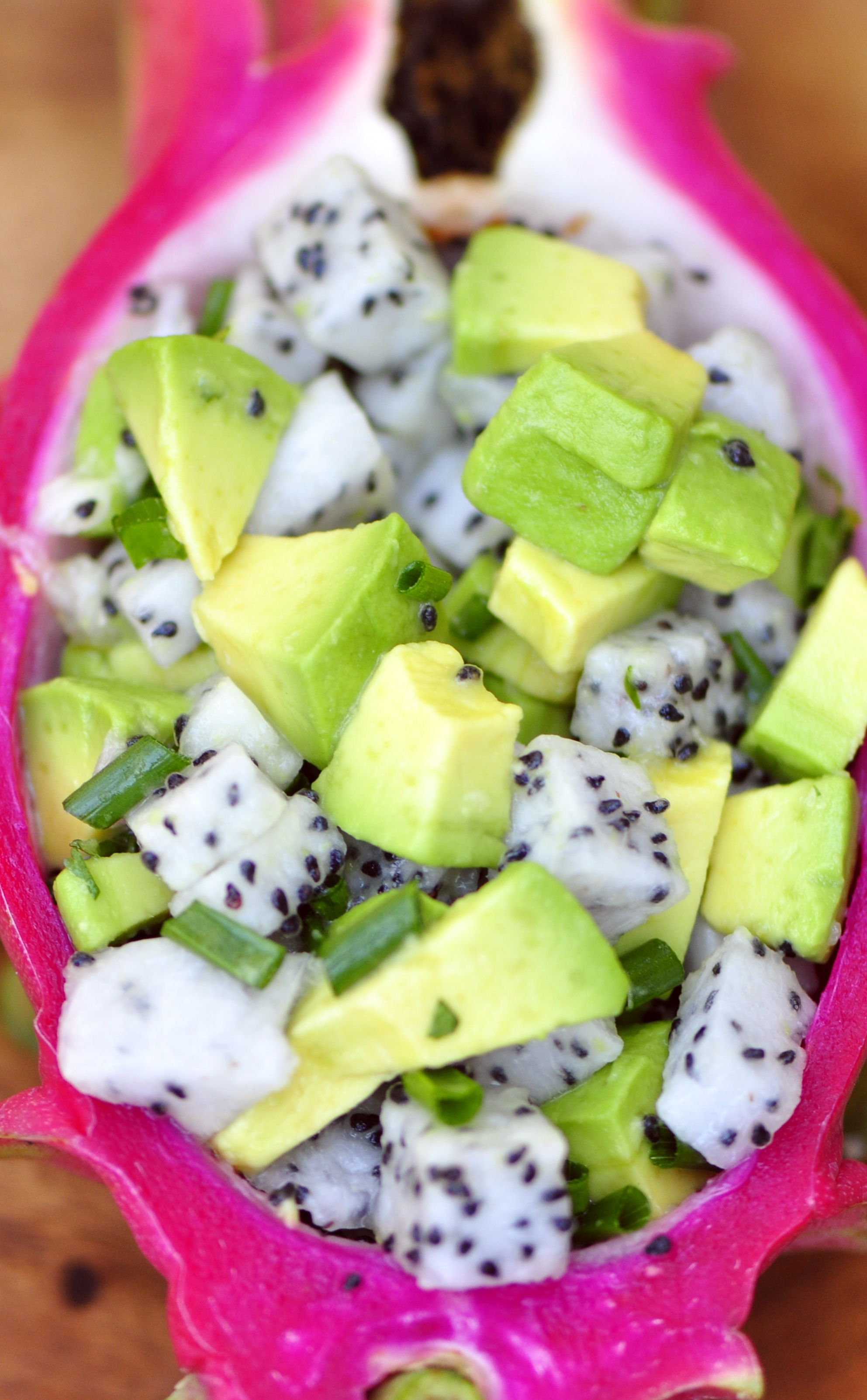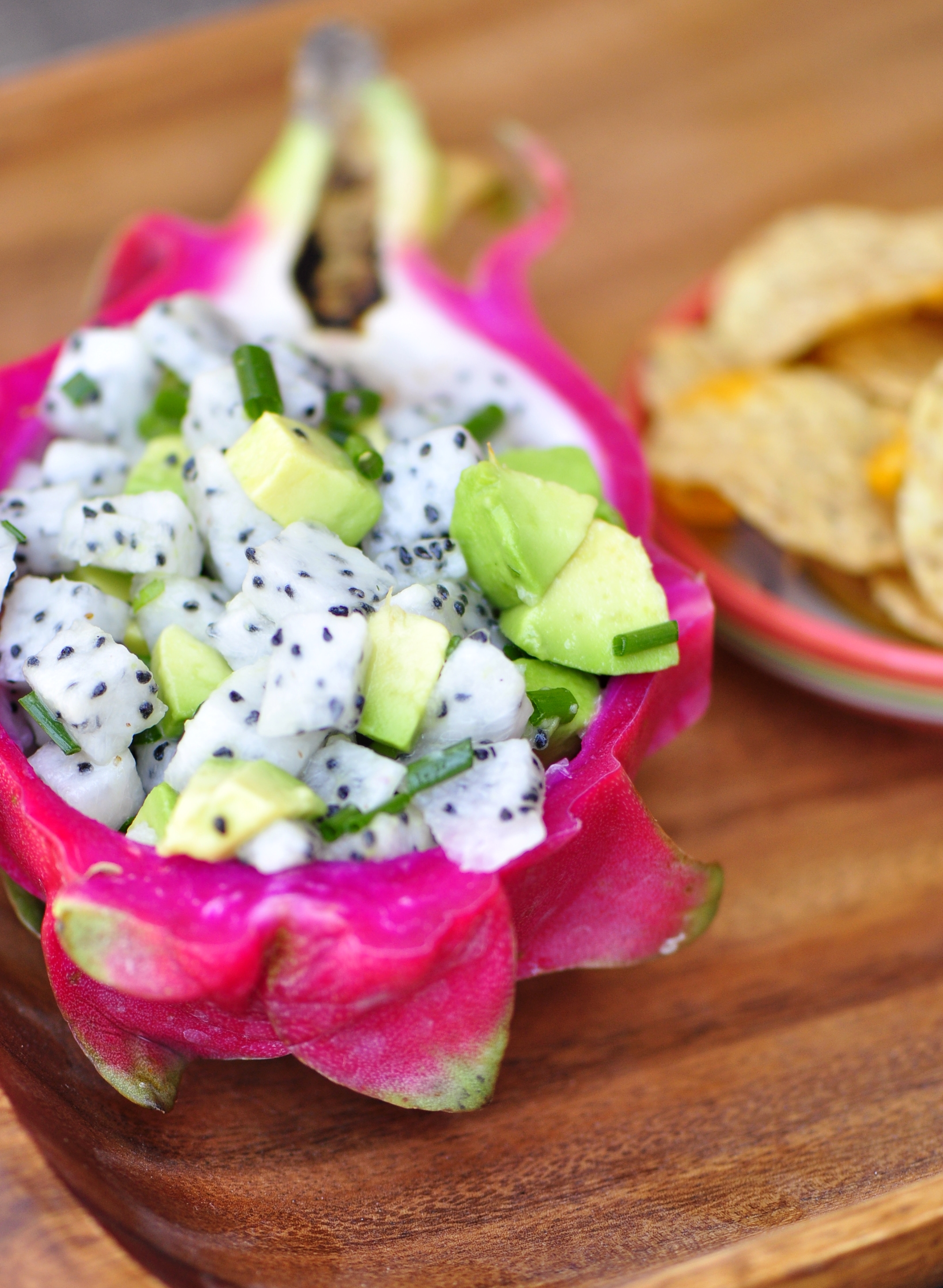 Spoon the prepared salsa back into the husk and serve up with crackers or tortilla chips, in tacos, and on a burger.Dragon Fruit and Avocado SalsaDragon Fruit and Avocado Salsa