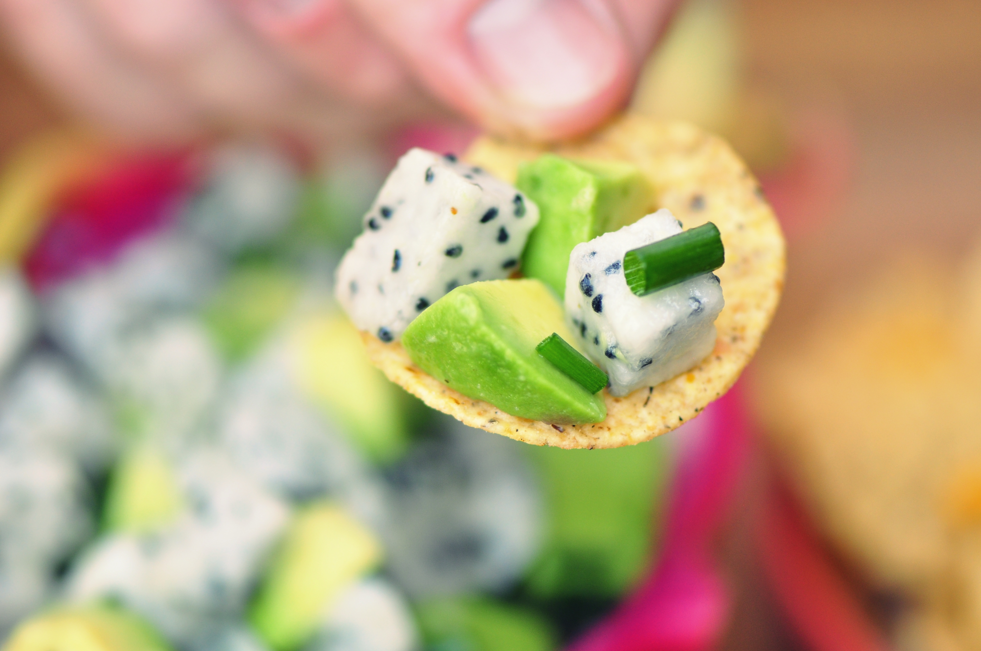 A light summer salsa made of dragon fruit, avocado, lime and herbs.