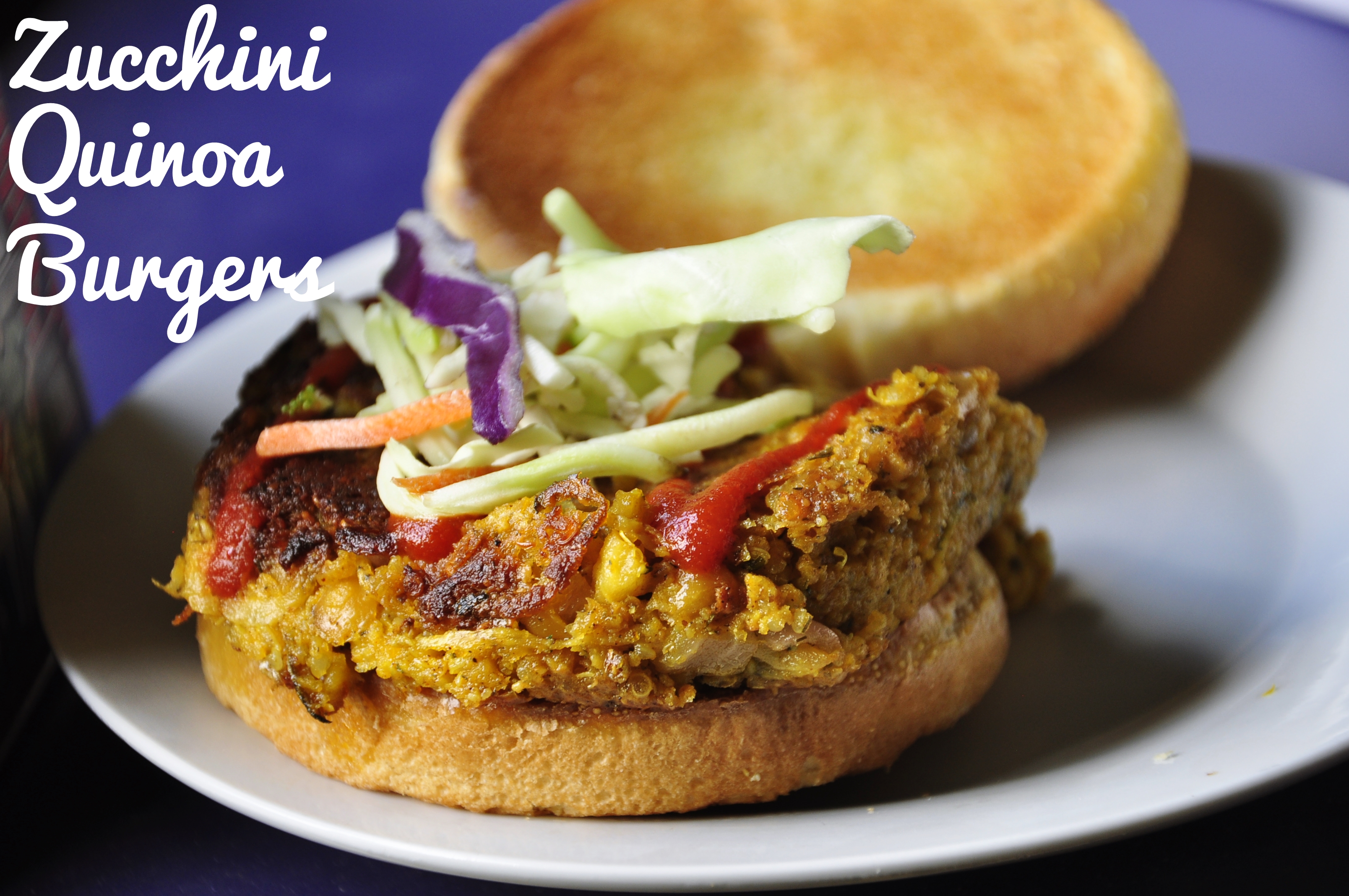 Vegan burger made with garden-fresh zucchini, chickpeas, a mix of seeds and herbs and more.
