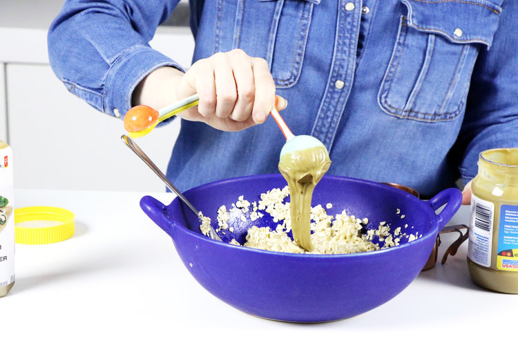 She added oats (ours are not verified gluten-free, but if you have Celiac disease be sure to buy a brand that is), coconut milk in place of almond milk, Sunbutter in place of cashew butter, cinnamon, organic honey, and vanilla extract. Mix well until the mixture comes together and is quite sticky. Pour into a pan lined with either parchment paper or coconut oil and even the mixture out with a fork. Then bake for precisely 12 minutes at 350F. Let it come to room temperature before slicing into bars.